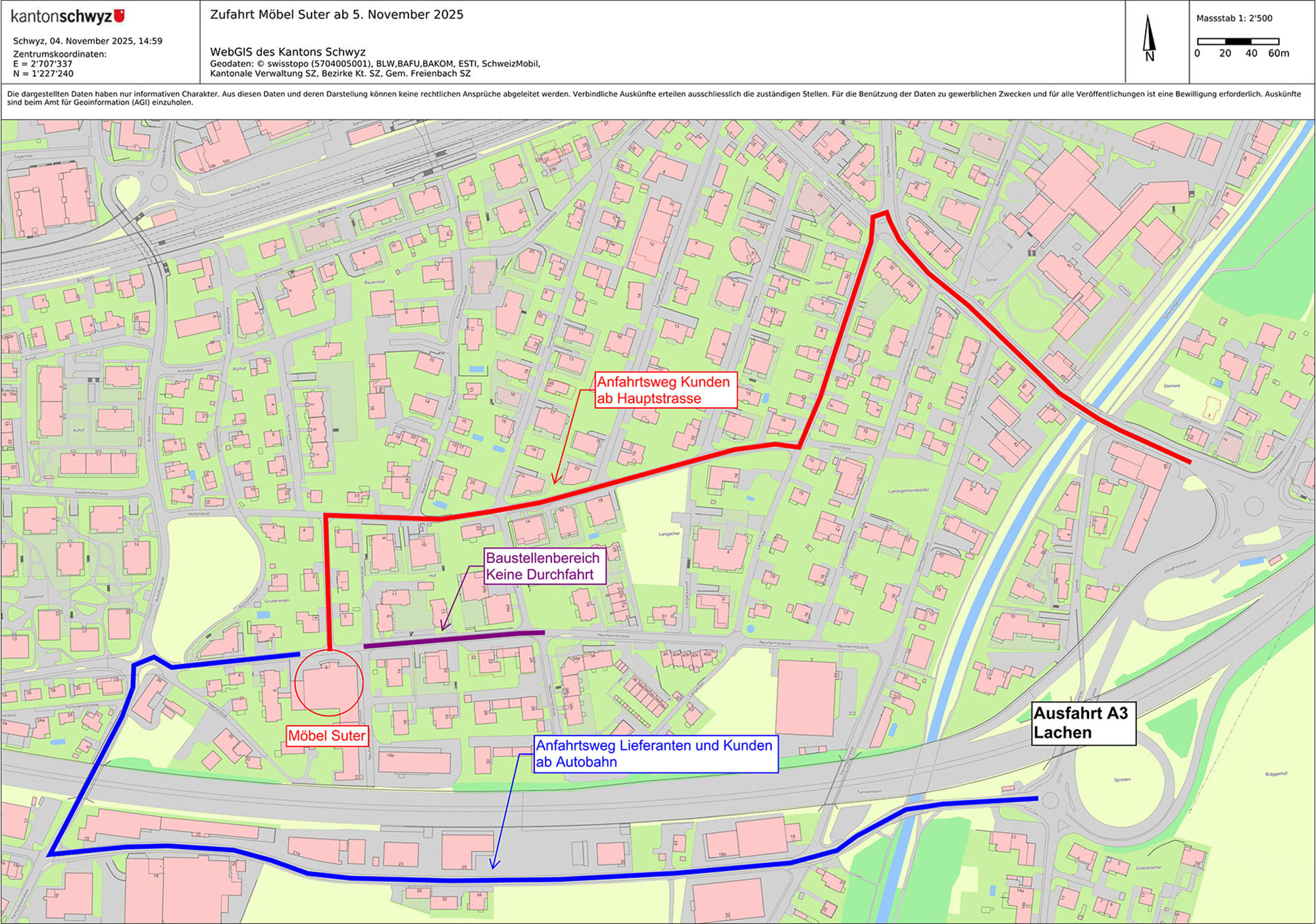 Bitte beachten Sie den Zufahrtsplan infolge den Bauarbeiten an der Neuheimstrasse ab November 2025